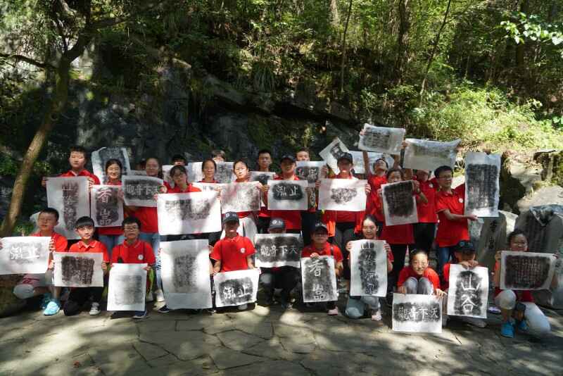 “窮幽深而不盡,坐石上以忘歸”是北宋文學(xué)家王安石用以形容山谷流泉美景的經(jīng)典詩句。在這里,營員們不僅體驗到了青山綠水木橋溪流構(gòu)成的靜謐之美,還感受到了石刻上的文化與藝術(shù):在長達1500余米的山谷兩岸的石壁上,自唐代至今留存的名家文人石刻將近400方,琳瑯滿目,美不勝收。走在歷代書法藝術(shù)長廊之中,仿佛再現(xiàn)了古代文人墨客徜徉于此,物我兩忘,題辭勒石的場景……營員們還合作體驗了拓片的制作,在鍛煉動手能力的同時親近了中國傳統(tǒng)文化,感受了中國書法魅力。
