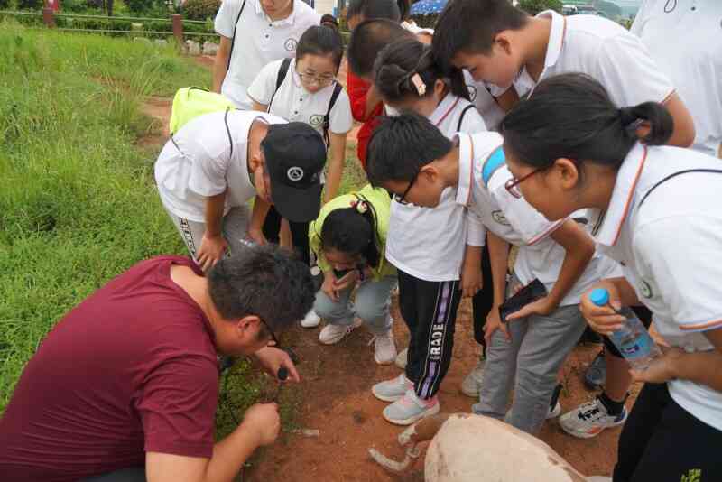 潛山產(chǎn)出眾多早中古新世脊椎動物化石。它們為研究嚙齒類、兔形類動物、鳥類等的演化輻射提供了重要的化石證據(jù)。在黃鋪村徐大屋化石點,營員們在地質(zhì)公園工作人員的講解下,觀察了典型的復(fù)原模型,了解了東方曉鼠、安徽模鼠兔的意義,還親自參與尋找化石。韓長沖是大別造山帶中研究超高壓變質(zhì)巖的經(jīng)典露頭之一,國內(nèi)外眾多學(xué)者在這里做了很多研究,取得了許多世界矚目的研究成果。在這里,吳維平教授對大理巖、硬玉石英巖、榴輝巖的類型、結(jié)構(gòu)構(gòu)造、成因機制以及整個大別山的地質(zhì)演化歷史進行了細致全面的講解。