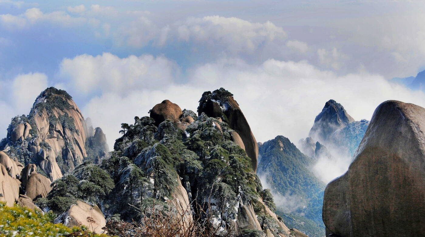 安徽天柱山:霧鎖群峰疑畫(huà)境 日照層林若錦屏